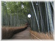 天龍寺を出て、竹林・・ 雨が反射して、白い玉が